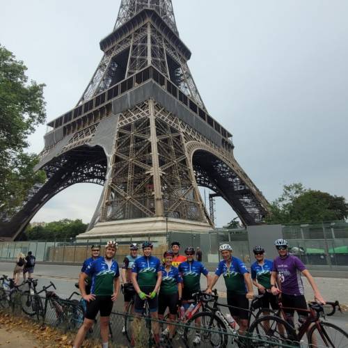 The following day’s itinerary consisted of the final ride from Beauvais to Paris, eventually reaching the Eifel Tower and the Champs Elysees – as the latter is the Tour de France finish – during a series of violent thunderstorms. The next day was a rather muted return to North Wales, with the team members feeling “exhilarated yet exhausted”.
