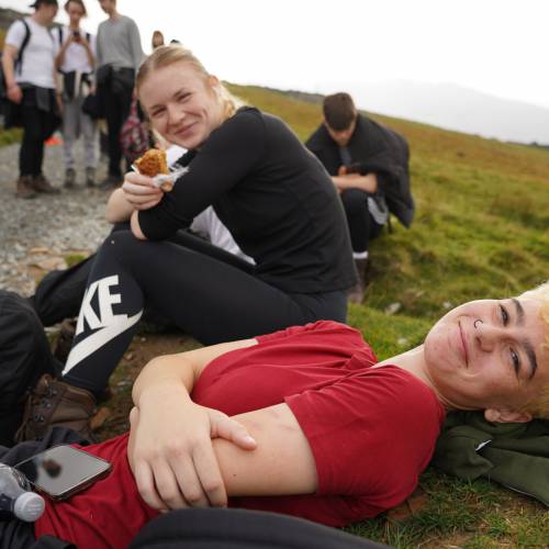 Uchafbwynt yr wythnos oedd taith i fyny mynydd mwyaf Cymru, Yr Wyddfa, oedd yn gyfle gwych i’r myfyrwyr ddysgu mwy am y sector awyr agored yng Nghymru, ar cyfleoedd sydd ar gael i ddefnyddio eu sgiliau Cymraeg yn y sector hwnnw.