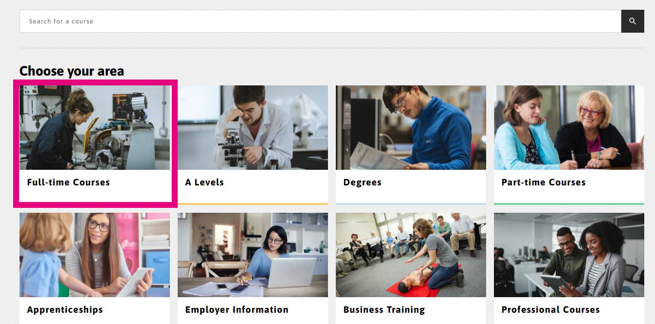 Os ydych yn gwybod pa gwrs llawn amser yr ydych am wneud cais amdano, gallwch wneud cais ar-lein yn uniongyrchol o'r dudalen sy'n rhoi gwybodaeth i chi am y cwrs.