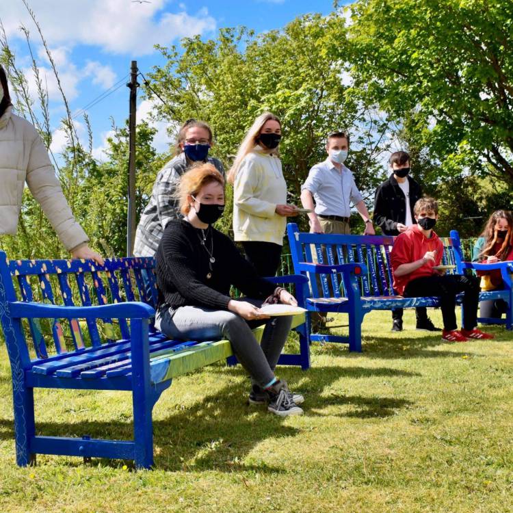 Ffion Gwyn, a-level art tutor at Coleg Meirion-Dwyfor oversaw the painting of the benches by a group of ten students from college.