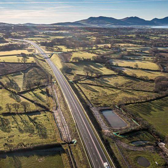 The Caernarfon and Bontnewydd bypass statistics are impressive: it is a £139m project; 93% of the workforce are from North Wales; 36 graduates and apprentices are employed on it, as well as 15 on work experience; the lane extends 9.8km (6 miles) from Plas Menai Roundabout to the Goat Roundabout; three new roundabouts have been constructed at Meifod, Cibyn and Bethel; it is the largest highway scheme in North Wales, and approximately 170,000 trees have been planted, as well as 20km of new hedgerows.