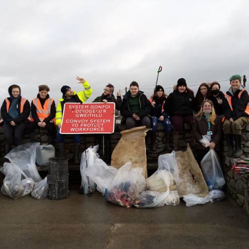 Thirty students were busy collecting rubbish left behind, or washed up on the popular beach, about 2 miles from Coleg Glynllifon’s campus.