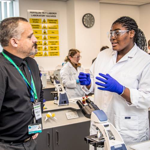 "Mae'r galw am bobl ifanc sydd wedi astudio pynciau STEM ar lefel 3 neu uwch, un ai'n academaidd neu'n alwedigaethol, yn tyfu a disgwylir iddo dyfu ymhellach. Dywedir y bydd 75% o holl swyddi'r DU dros ddegawd nesaf yn gofyn am wybodaeth a sgiliau ym maes STEM."