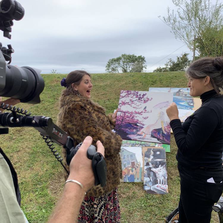 Well-known singer, actor and TV presenter Carys Eleri - who will be heading the new production – along with employees from the production company Capten Jac, visited the college’s Pwllheli campus to meet and film the students who have been working on the project with their art tutor Ffion Gwyn.