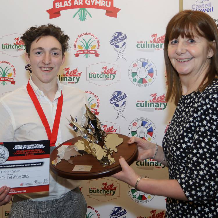 Dalton received the trophy from Minister Lesley Griffiths at a presentation evening in Llandudno hours after the curtain came down on this year’s championships. Dalton took a year out last year and is planning to complete his Culinary Arts Degree with the college in September.