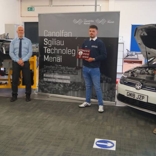 The Shield is in remembrance of former student Rhun Jones, who sadly passed away in February 2020 following a tragic car accident. To honour the memory of Rhun, his parents pledged to award the Gryffudd Rhun Jones Shield for the next ten years, along with a £100 prize, to a deserving learner on the Automotive Engineering courses delivered at Coleg Menai.