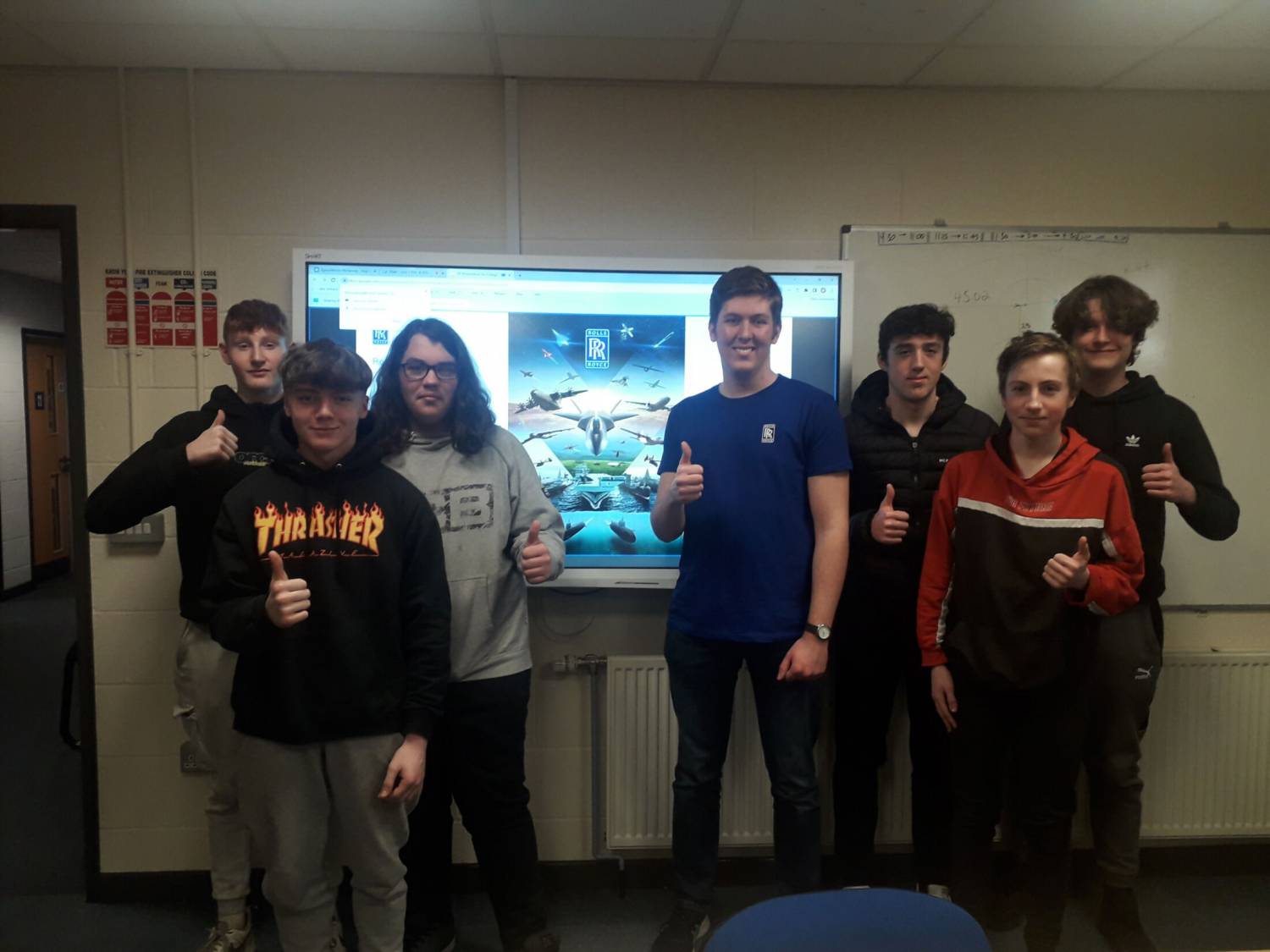 Thomas gave an illuminating presentation to current first year engineering students regarding his experiences since leaving college: from going through the initial selection process at Rolls Royce, to the work he has been doing at the company’s Engine Testing Facility in Derby. Rolls Royce is also at the forefront of aviation technology.