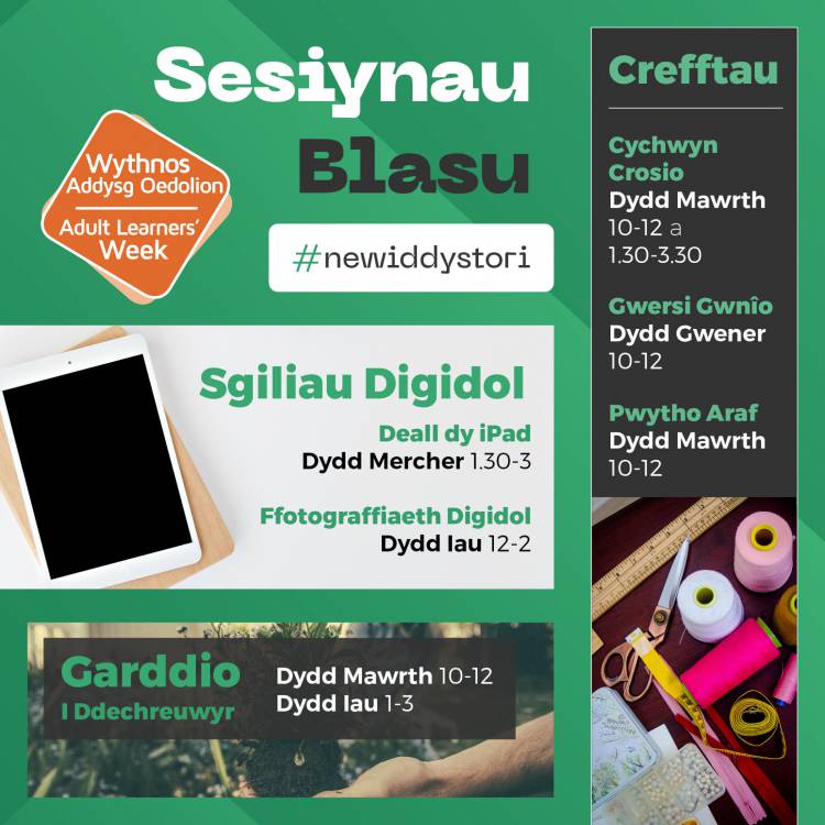 For more details on the Taster Sessions and to book your space, click here, or e-mail Gwenllian Dafydd: dafydd1g@gllm.ac.uk