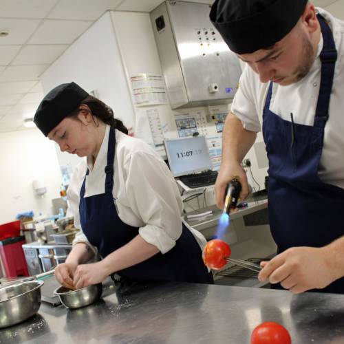 Jay is studying for a Foundation Degree in Culinary Arts and Pippa is enrolled on the VRQ Level 3 Diploma in Professional Cookery course. Both study at the college’s Rhos-on-Sea campus.