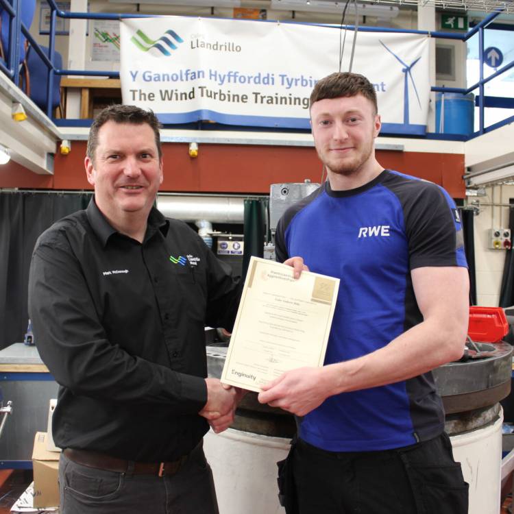 Twelve of RWE’s wind turbine technicians were presented with certificates recently, after successfully completing the first year of their college-based training at Wales' only Wind Turbine Training Centre, situated at Coleg Llandrillo’s Rhos-on-Sea campus.
